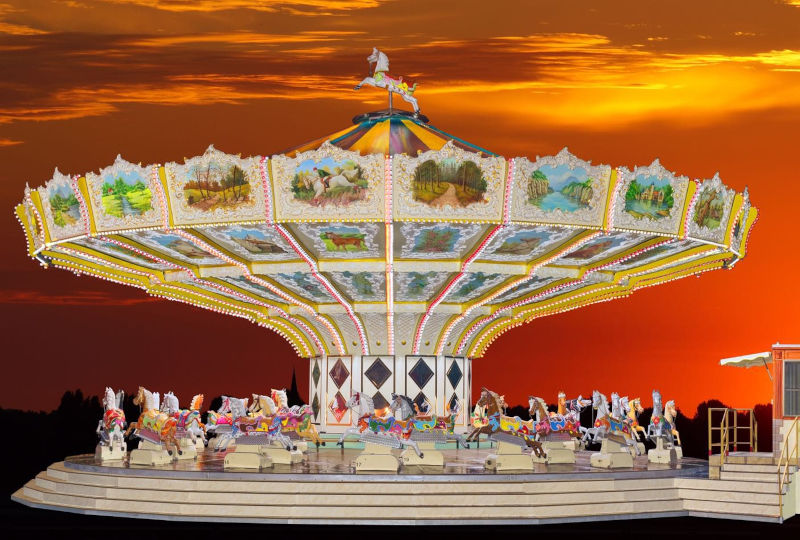 Übrigens: der Dachstuhl des Karussels war der erste seiner Art und diente als Vorbild für die heutigen Wellenflieger-Karussells.